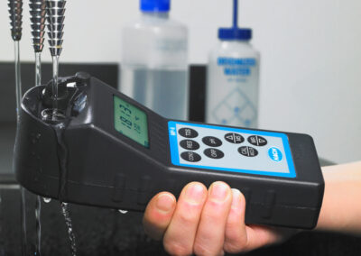 Medidor sin cables fácil de utilizar para comprobaciones puntuales portátiles de aplicaciones de agua limpia y muestreo de grifos. El medidor se maneja con una sola mano mediante una acción de «sumergir y listo» para unos tests rápidos.